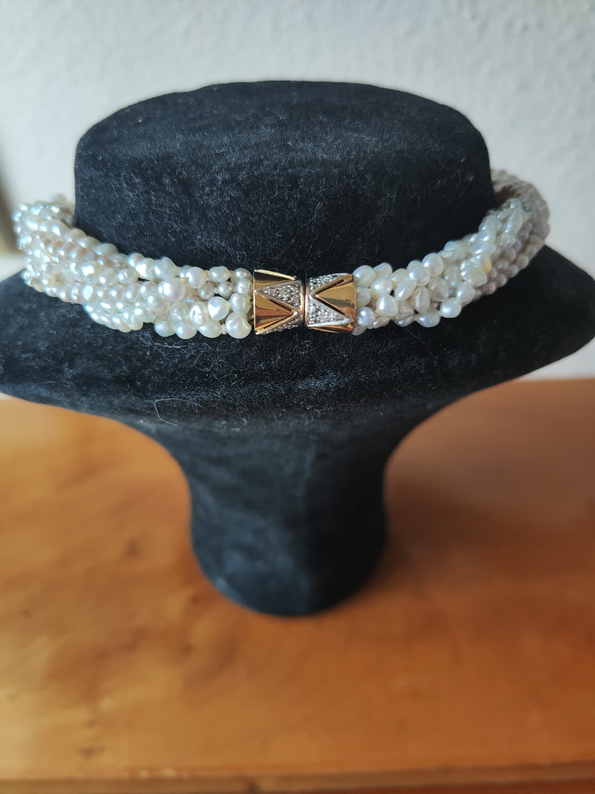 Belle torsade Perles d’eau douce 7 rangs Fermoir en or 18K bicolore et diamants
